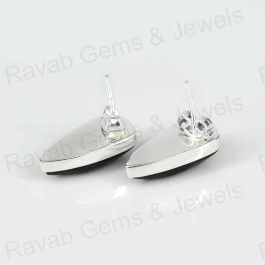 Best Quality 925 Solid Sterling Silver Women's Shield Shape Stud Earring Natural Black Onyx Checker Cut 10x20mm Bezel Gift