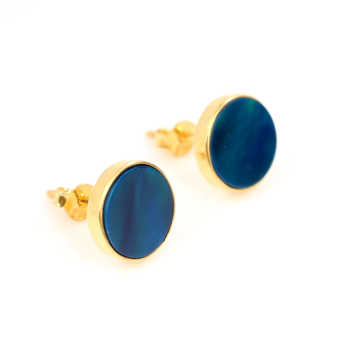Best Selling Blue Synthetic Opal Round Flat Solid 925 Sterling Silver Handmade Stud Earring for Women & Girls Jewelry Suppliers
