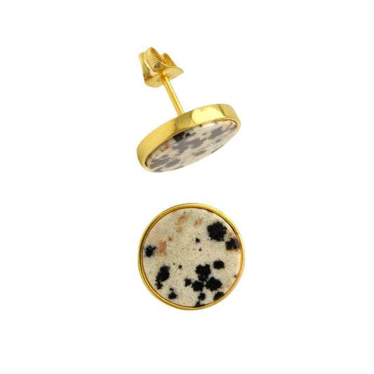 Handmade Dalmatian Jasper Women Earrings 18k Gold Plated Sterling Silver Natural Round Shape Gemstone Stud Earrings