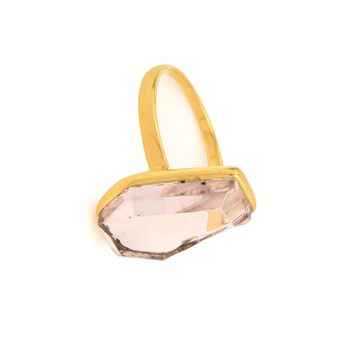 18K Gold Plated Sterling Silver Handmade Ring for Women 10x17mm Pink Morganite Hydro Quartz Gemstone Bezel Waterproof Jewelry
