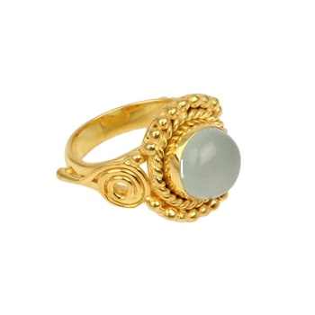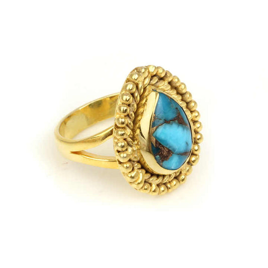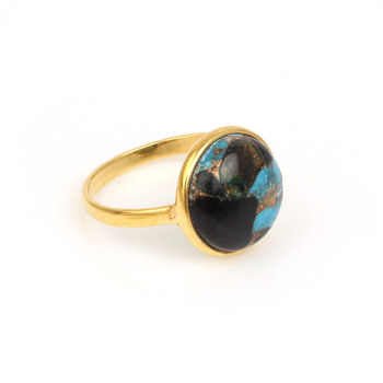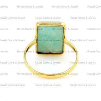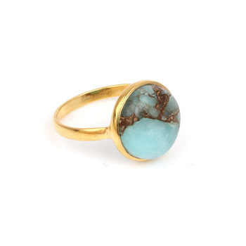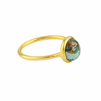 18K Gold Plated Boho Vintage Dainty Ring for Women New Design 8mm Natural Chrysocolla Copper Gemstone Bezel Jewelry