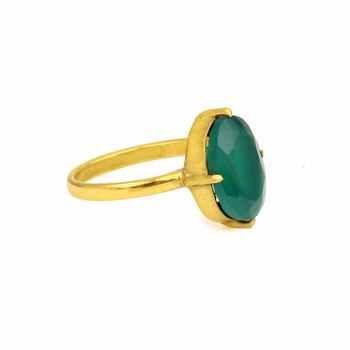 18K Gold Plated Sterling Silver Dainty Ring Women Beautiful 10x14mm Emerald Cut Natural Green Onyx Oval Shape Gemstone Fine