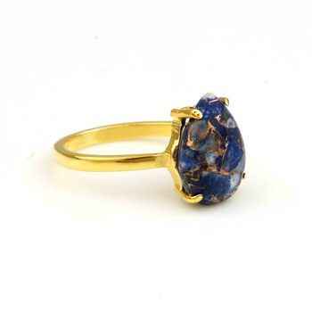 18K Gold Plated Women's Ring 10x14mm Lapis Lazuli Copper Gemstone Prong Setting Beautiful 10x14mm Lapis Lazuli Copper Fine Rings