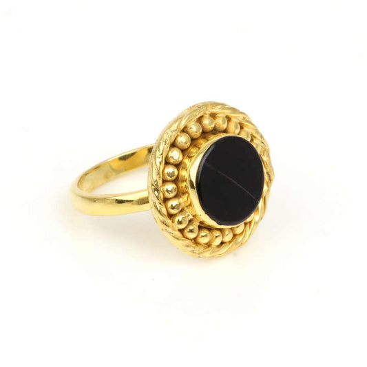 18K Gold Plated Boho Designer Ring 12mm Natural Black Onyx Stone Bezel Genuine 925 Silver Beautiful Dainty 18K Gold Ring Fine