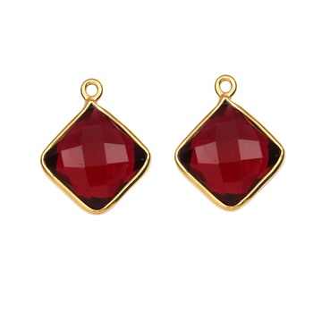 18K Gold Plated Sterling Silver 12mm Bezel Pendant Necklace Red Garnet Hydro Faceted Quartz Stone Fine Pendants Charms Wholesale