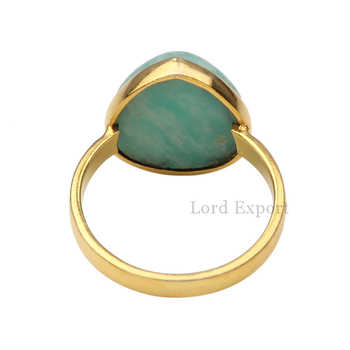 18K Gold Plated Genuine 925 Sterling Silver Dainty Ring 12mm Natural Amazonite Copper Gemstone Bezel for Women Fine Jewelry