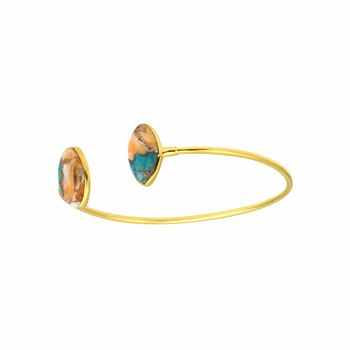 18K Gold Plated 925 Silver Dainty Marquise Cuff Bangle 8x16mm Natural Spiny Oyster Copper Turquoise Gemstone Fine Bracelet