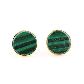 18K Gold Plated Stunning Indian Design Natural Malachite Gemstone 925 Sterling Silver Fine Stud Earrings for Women and Girls
