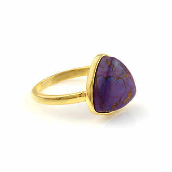 18k Gold Plated 925 Silver Boho Dainty Trillion Shape Ring 12mm Mohave Purple Copper Kingman Turquoise Stone Beautiful for Her