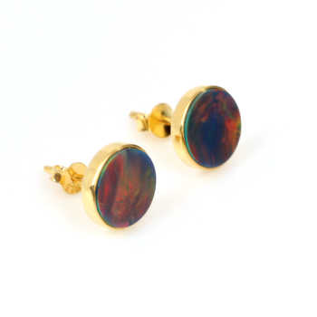 Highly Recommended 12mm Flat Solid 925 Sterling Silver 18K Gold Filled Handmade Women's Stud Earrings Black Fire Opal High Fine