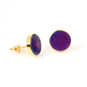 High Selling 18K Gold 925 Sterling Silver Stud Earrings Handcrafted Flat Solid Synthetic Purple Opal Gemstone for Party Fine