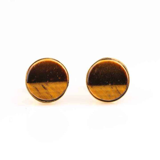 Hot Selling 10mm Natural Tiger Eye Stone Waterproof Jewelry 925 Silver 18k Gold Plated Daily Wear Dainty Stud Earrings for Women