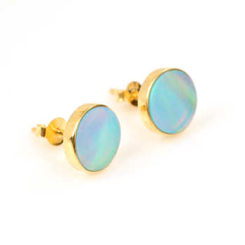 Hot Selling Best Quality Synthetic Rainbow Fire Opal Round Flat Gemstone Solid 925 Sterling Silver Modern Party Stud Earring