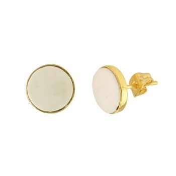 Hot Selling 9mm Natural White Agate Gemstone Bezel 18k Gold Plated Genuine 925 Silver Dainty Minimalist Stud Earring Women Gift
