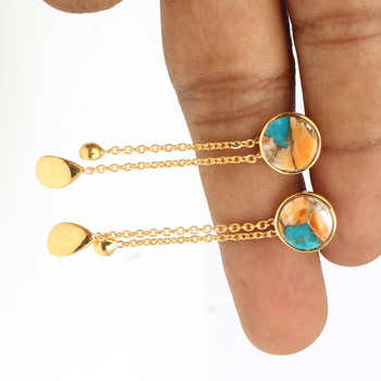 Hot Selling Design Spiny Oyster Copper Turquoise Solid 925 Silver 18k Gold Plated Dangle Drop Heggie Hoop Stud Earring for Women