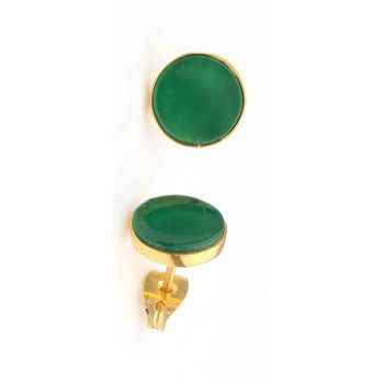 Impressive 18K Gold Plated Onyx Gemstone Stud Earrings 925 Sterling Silver Jewelry With Natural Green Round Shape Fine Design