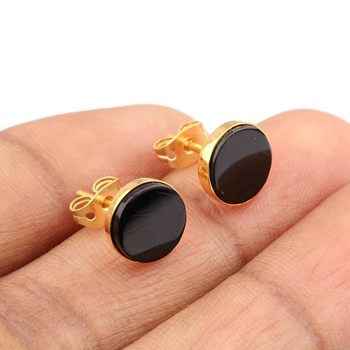 Minimalist 9mm Natural Black Onyx Gemstone Stud Earrings New Design Daily Wear Jewelry for Women Teens Made of Sterling Silver