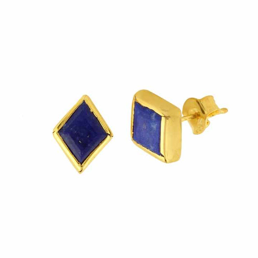 Natural Lapis Lazuli Gemstone Stud Earrings Customized Various Style Wholesale Sterling Silver Gold Plated Stud Earring
