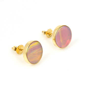 New Arrival Handmade 925 Sterling Silver 18K Gold Filled Stud Earring Girls Synthetic Multi-Color Opal Flat Gemstone Fine Stud
