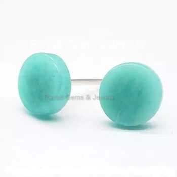 New Arrival Solid 925 Sterling Silver Natural Amazonite 12mm Round Smooth 18k Gold Plated Stud Dangle Earring Fine Jewelry