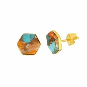New Design 9mm Mohave Spiny Oyster Copper Turquoise Genuine Silver 18K Gold Plated Dainty Stud Earrings for Women Fine Jewelry