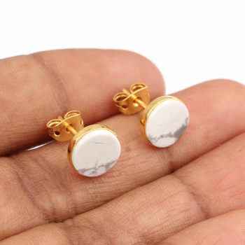 New Design 9mm Natural White Howlite Turquoise Stone Waterproof Jewelry Sterling Silver 18k Gold Plated Stud Earrings for Her