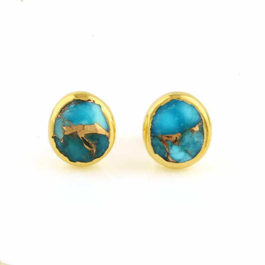 Stunning Design Natural Blue Copper Turquoise Earrings Gemstone Jewelry Supplier Sterling Silver Gold Plated Stud Earring