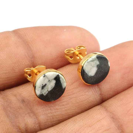 Top Quality 12mm Round Coin Natural Snowflake Obsidian Sterling Silver Gold Plated Daily Wear Minimalist Stud Earrings for Her
