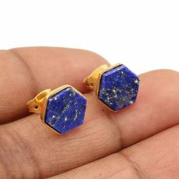 Top Selling 10mm Smooth Hexagon Ring Women's Handmade 925 Sterling Silver 18K Gold Plated Lapis Lazuli Fine Stud Earrings