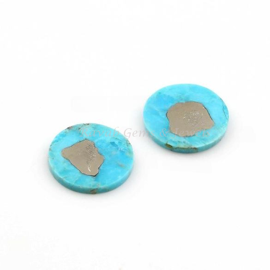 Turquoise Pyrite Round Coin Shape Gemstone, Calibrated Stones, Quality Stone For Jewelry Earring Making 12mm 2 Pcs Set All Size Available
