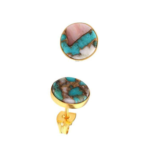 Trendy Stud Earring pink Earrings Turquoise Opal Copper Sterling Silver Bezel Natural Round pink & Blue Stud Earrings