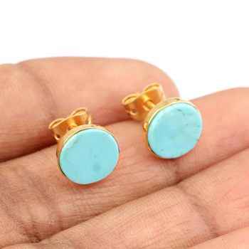 Wholesale 925 Sterling Silver Bezel Gold Plated Stud Earrings Natural Gemstone Arizona Turquoise Fine Indian Jewelry