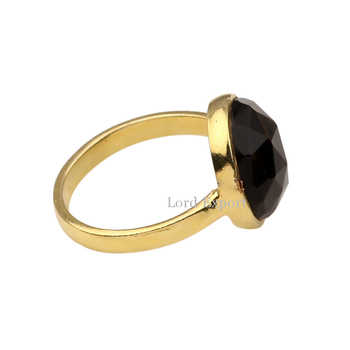 Wholesale Latest Natural Gemstone Smoky Quartz Ring Design Handmade 925 Sterling Silver 18k Gold Plated Ring for Women and Men