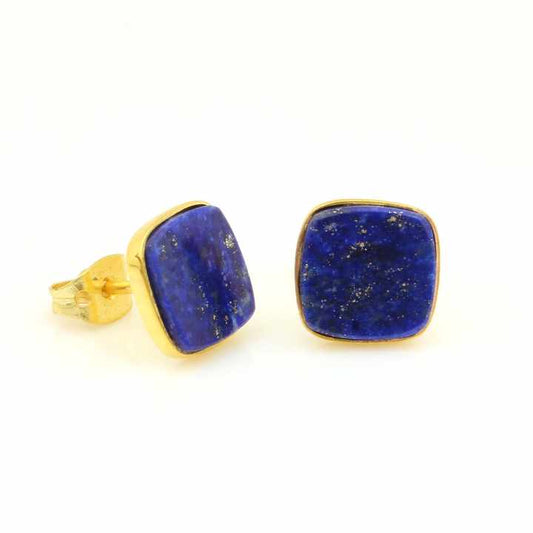 Wholesale 925 Sterling Silver Natural Lapis Lazuli Fine Stud Earrings Handmade 18K Gold Plated Gemstone Jewelry Unisex Parties