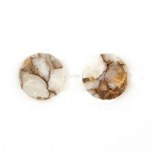 White Calcite Copper round Coin shape 12mm Both side Flat Gemstone , White Calcite Copper Calibrated jewelry making beads 2 pcs set
