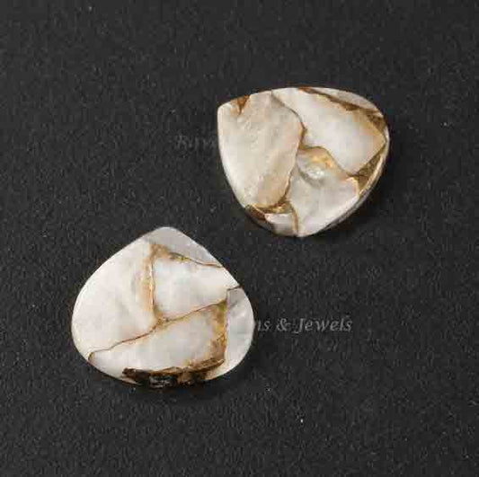 White Calcite Copper Pear Shape Smooth Cabochons Gemstone, Loose Beads Calibrated Stones 5 Pcs Set Available At Wholesale Prices