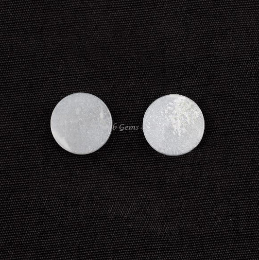 White Moonstone Round Coin Shape 12mm Flat Gemstone For Jewelry Making, White Moonstone Pendant, Earrings Making Beads 2 Pcs Set