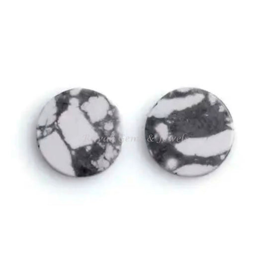 White Howlite Round Coin shape 12mm Flat Gemstone for jewelry making, White Howlite pendant, earrings making beads 2 pcs set