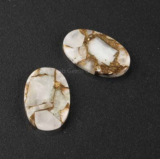 White Calcite Copper Oval Shape 12x19mm Both Side Flat Gemstone, Calibrated Stone For Jewelry Earring Making, Lovely Pair Stones 2 Pcs Set
