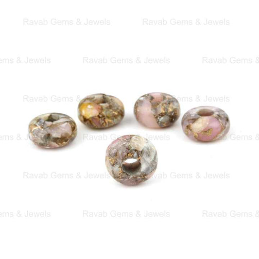 14x8mm Natural Pink Opal Coral Copper Composite Smooth Rondelle 5mm Big Hole Gemstone Beads for Jewelry Making Wholesale Price
