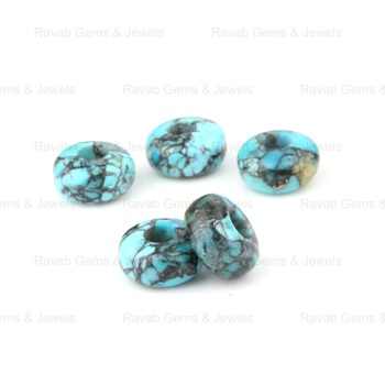 14x8mm Natural Polished Arizona Turquoise Rondelle Shape Smooth Big Hole Size Calibrated Size Gemstone Beads for Making Jewelry