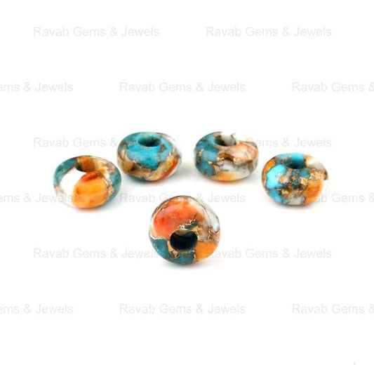 14x8mm Rondelle Big Hole Natural Smooth Spiny Oyster Turquoise Copper Composite Briolette Gemstone Beads for Jewelry Making