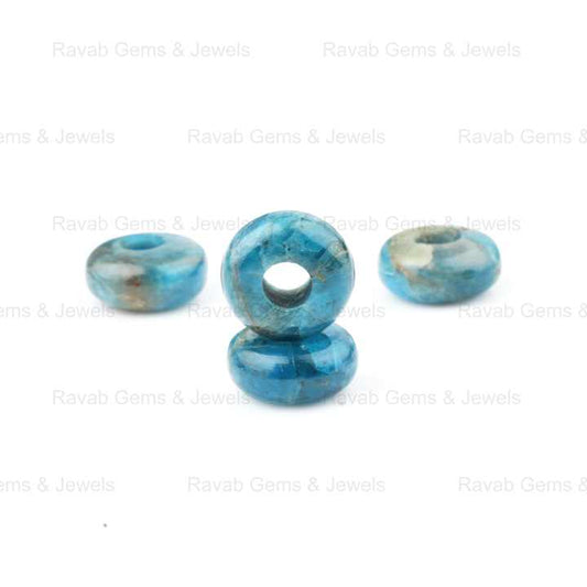 High Quality 14x8mm Natural Blue Apatite Rondelle Smooth 5mm Big Hole Loose Gemstone Beads for Jewelry Making Wholesale Price