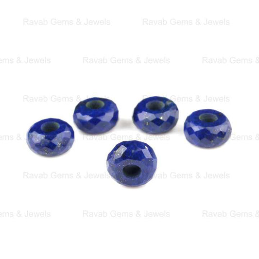 High Quality Natural 14X8mm Blue Lapis Lazuli Stylist Faceted Rondelle 5mm Big Hole Loose Gemstone Beads for Making Jewelry