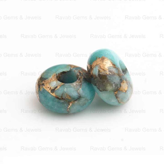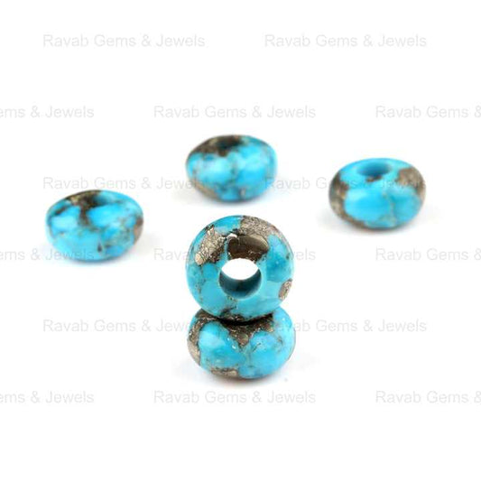 14x8mm Natural Polished Pyrite Turquoise Rondelle Shape Smooth Big Hole Size Briolette Gemstone Beads for Making Jewelry