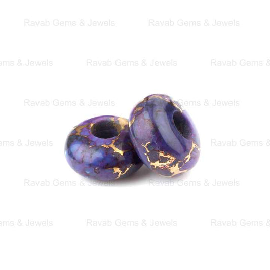 14x8mm Natural Smooth Mohave Purple Turquoise Copper Composite Briolette Rondelle Big 5mm Hole Gemstone Beads for Jewelry Making