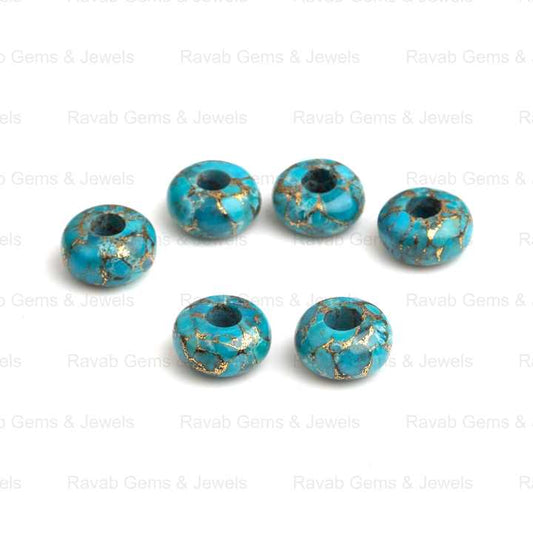 14x8mm Natural Polished Blue Copper Turquoise Rondelle Shape Smooth Big Hole Size Calibrated Gemstone Beads for Making Jewelry