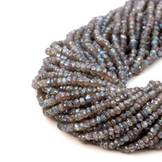 Lowest Price Natural 3mm to 4mm Blue Fire Labradorite Faceted Rondelle 13 Inches Length Gemstone Strand Beads for Making Jewelry