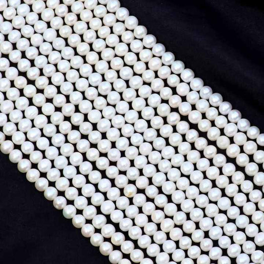 Best Quality Natural 6mm Smooth Ball Round Shape Freshwater Pearl for Jewelry Making 13" Inches Strand Gemstone Beads