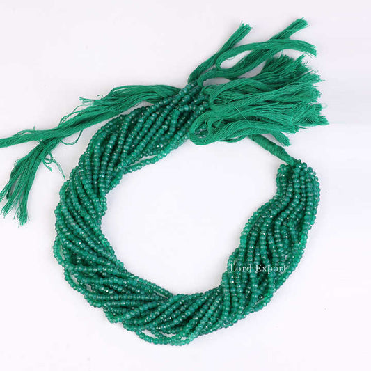 High Quality Wholesale Natural 3mm to 5mm Faceted Rondelle Green Onyx Gemstone Strand Beads for Making Jewelry at Factory Price